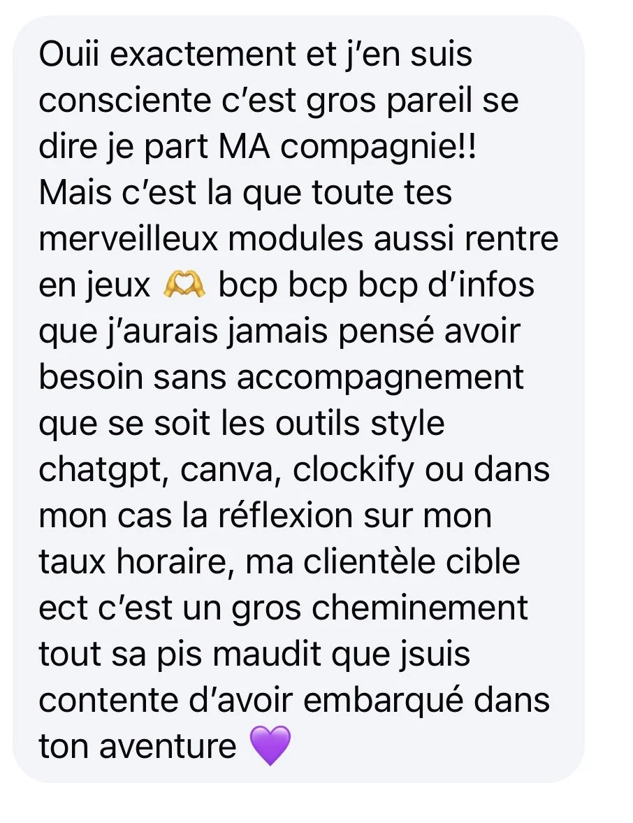 Tu poses des actions concrètes, une étape à la fois, et tu vois ton entreprise se bâtir sous tes yeux.